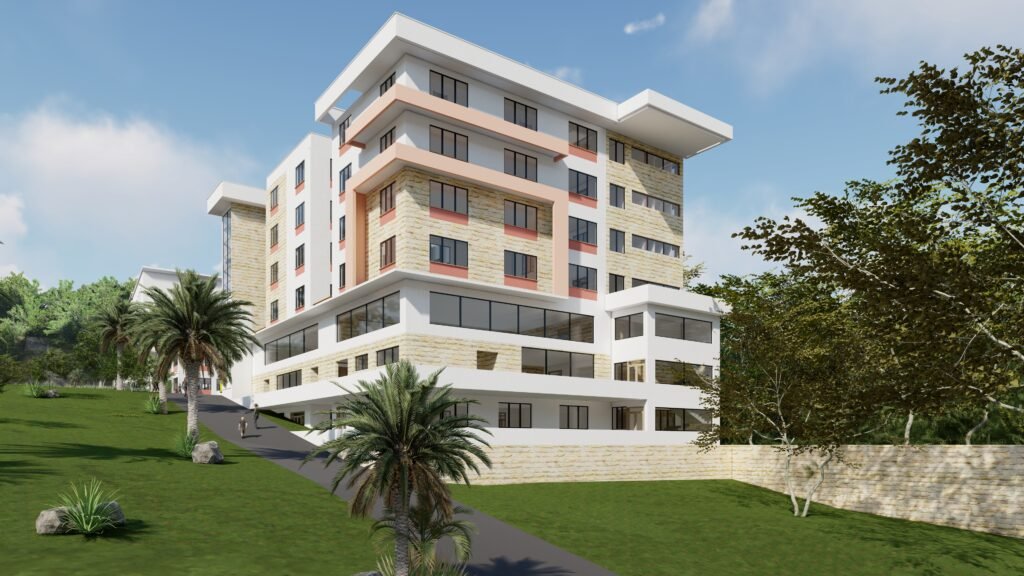 This project is a modern, four-storey institutional building designed for the Mt Carmel Girls’ School in Ngong, Kajiado County. The facility was developed to consolidate key educational and administrative functions into a single, integrated structure.